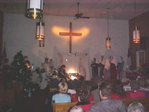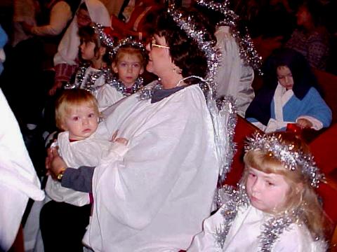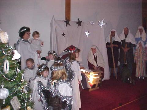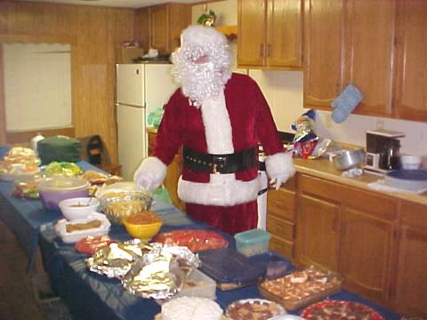 Enon Baptist, like many other churches in the county, held their annual Christmas Program last night. Christmas songs, poems, plays and the manger scene, called for the participation of a large number of the congregation. The evening was capped with presents for the children, a visit from Claus and some of the finest food you'll ever see. It was so good, Santa was caught dipping into the delights before the congregation arrived.