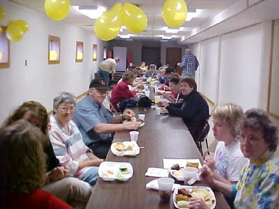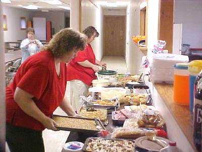 Parsons' sister, Saundra Ballengee helps prepare the dinner in his honor By Bob Weaver Staff Sergeant Randy Parsons has been home in Calhoun for a few days, on a leave from the war in Iraq and his station in Germany. His family and friends gave him a surprise get-together yesterday at the Calhoun Park. The 14-year veteran said "I was completely surprised. They kept a perfect secret," as dozens of well-wishers joined in a family-style dinner. "I've been in Iraq for twelve months and I want you to know what a wonderful job your West Virginia soldiers are doing," he said. Parsons, who was originally a member of the 1092nd Engineers in Spencer a few years ago, said he bumped into several of them in the war-torn country. "They're great workers, believe me. I want you to be sure and tell your readers they should be proud," Parsons said. Parsons and his wife, the former Tracy McKown, said they try to read the Hur Herald every day. "It has become important to us, staying in touch with home.