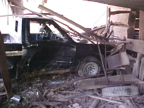 A pick-up truck crashed through a barn at the foot of Liberty Hill near Arnoldsburg at 7:30 this morning, doing extensive damage to the truck. The vehicle spun out of control on US 33-119, went through a field, struck a tree, crashed through an outside wall and came to rest against an inside wall. The driver of the vehicle John Koon of Spencer and a passenger were uninjured. Calhoun EMS responded with the Arnoldsburg VFD. Chief Deputy Carl Ballengee investigated.