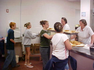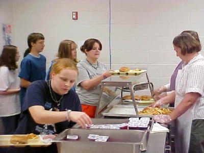 Students move quickly and orderly through serving line, the cooks Evelyn Fulks, Joann Heiney, Kay Greathouse and Ronda DeWeese