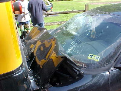 ![]() Car wedges under back of Calhoun school bus
