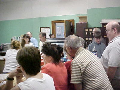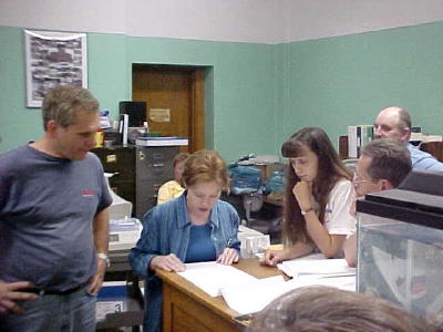 ![]() County Clerk Richard Kirby and election crew call out the numbers