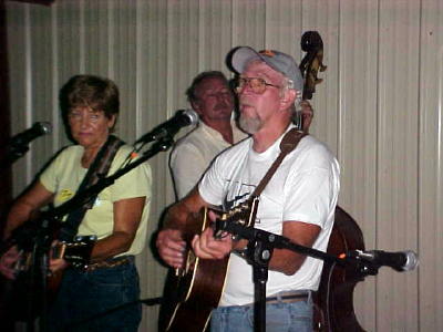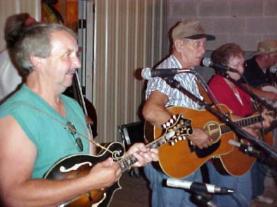 Members and guests join Charlie McKown, It was a big bash in the deep woods of Bear Fork Saturday, with a number of bands performing at the Second Annual Bear Fork Bluegrass Festival. Johnny Staats was one of the groups entertaining about two-hundred and fifty folks who drove down the much improved road to the pavilion for a day's worth of entertainment. The Bear Fork Hunting Club dates back to the late 1800s, where local residents actually camped and hunted in the wilderness area a week at a time, setting up a store, barber shop and sleeping tents. (See "Tales of Bear Fork" under People, Humor and History) Other bands performing at the event were, Spirits of Bluegrass, Muddy River Band, Connie & The McCumbers Brothers, Break Mountain, Denny Dobbins Band and the Bear Fork Band. Sound was provided by MegaZound.