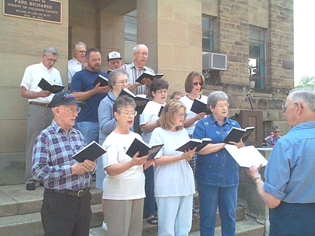 prayers for national leaders, America and the world. The group met at the front of the Calhoun County Courthouse, where hot dogs, drinks and snacks were shared with the community. Donations went to the food bank at the First Baptist Church.