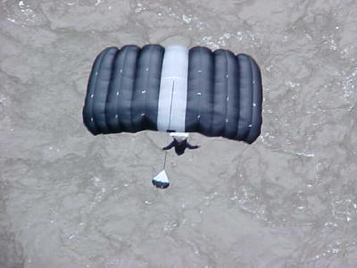 Three jumpers drift down to landing site The 25th anniversary of Bridge Day went on with few hitches. There were a few broken ankles and scrapes when the jumpers landed 876 feet below along the New River. The world's largest extreme sports event had some disruptions by freezing rain, sleet and wind. Hardy spectators endured the weather. They came and went more rapidly, not hanging around quite as long. Hundreds of BASE jumpers took the thrill seeking leap from the world's second longest single arch bridge. Over 100,000 spectators gasped and awed when jumpers did the free-fall for a few seconds before their chutes opened.