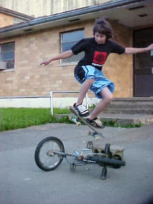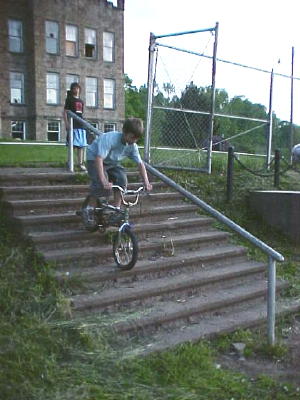 Steven Keaffaber takes a bumpy ride down concrete steps