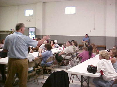 The man, when asked to state his name, answered "Don't have one." He told Rizzo "It's a common fact that anybody who's been involved with the criminal system, as I was for 10 years ... starts out small, and continues just like I did. I went from little misdemeanor, minor, stuff because I had an anger management problem, until I killed somebody." The unnamed man said "Mister, my son is going to that school next year, and you will not be there, do you understand that?" At that point Dr. Rizzo chose to leave the meeting, and declined further comment. Former Calhoun educator and school board member Lee Evans told Rizzo that throughout life "You make a good choice and you reap the rewards. Make a bad choice and you suffer the consequences," referring to Rizzo's 2001 conviction where he entered his former girlfriend's house and discovered her in the shower with another man. "Dr. Rizzo has made some bad choices in his life and now must suffer the consequences," he said. Rizzo said, he had suffered the consequences of his actions and served the sentence the court handed down to him. Rizzo received a 4th degree burglary charge, which is a misdemeanor not related to burglary, but indicates trespassing or unauthorized entering without breaking. He spent 30-days in jail. (See earlier Herald stories) Evans told the group Rizzo has a pattern of bad choices. Evans concluded, "We now have choices to make. Should Dr. Rizzo stay or go? I say go." Rizzo, who openly discussed his personal problems at Monday's school board meeting, said his problems have not interfered with his mission as an educator. Superintendent Ron Blankenship said Rizzo's 27 year educational career has been exemplary, widely defended by parents, teachers and the PTA when he was having troubles. He was honored for his work by the Washington Post. Evans asked, "How would you handle a discipline problem in school, when the parents and children know you're just as guilty as they are?" Rizzo responded that he had dealt with children and discipline issues for many years with no problems. "I totally understand your concerns, but I think the discussion we had after the Board meeting was pretty intense and a lot of people were understanding," he said. One of the meeting participants replied, "Only two parents were understanding." Evans asked Rizzo about an earlier incident in 1996, where charges were dropped. Rizzo stated that he would prefer to discuss the matter without children present. Some children were taken outside, while others remained. Rizzo attempted to answer questions, but appeared reluctant as children were still present in the meeting. How Rizzo was hired was brought to question by several citizens, saying only a resume was used without a formal application, and a background check was lacking, blaming the school system. "A simple procedure of asking if you have ever been convicted of a felony or misdemeanor would have solved this problem," said Evans. Evans said people are asking, "How could this happen, how could the Board of Education hire someone without an application. how did you get by that process?" "You seem to me like the type of person who likes to be in control, can't accept rejection, and you don't understand what 'no' means," he continued. Evans then said, "Dr. Rizzo, why don't you do us all a favor and just move on?" He continued by saying, "I tell you what sir, this is the consensus of Calhoun County, not just Arnoldsburg." His statement was followed by applause from attendees. At Monday's meeting, it appeared that a number of parents felt Rizzo adequately answered questions regarding his history. Brenda Holcomb said, "The problem I have with this man is not that he was arrested. It's not that he was charged, or that he had problems with women. It's his anger management problem, that I have a problem with," referring to counseling he received as part of his sentence. Rizzo said such counseling is to help people. Holcomb continued "This man isn't at fault for this situation, he has to live and make a living. It's the school superintendent and the school board's fault he's in this situation." Ms. Holcomb said, "We cannot crucify him for being put in this position." Evans disagreed, saying "He needs to be crucified." Holcomb said, "We were told if this man stays at our school and we cannot control that, we can go to the Board and request our children be transported from Arnoldsburg to the Pleasant Hill School, at the expense of the Board of Education." Ms. Holcomb proposed "If we band together and keep them out of school, the system will lose a lot of money for each kid, everyday they aren't there - sooner or later they will run out of money." Holcomb reported she had talked with Del. Bill Stemple about the problem. "Stemple told me, if we band together and get behind each other, there's hardly a chance we're going to be prosecuted, because they can't afford to prosecute all of us," she said. "They can't arrest us all because there's no place to put us." Hur Herald Articles regarding situation: 8/18 Holcomb Organizes Meeting Over Rizzo Hiring 8/17 Dr. Rizzo "Answered Our Questions With Brutal Truth" 8/16 Dr. Rizzo Bares Personal Life 8/15 Arnoldsburg Parents Want Answers 8/13 Arnoldsburg Parents Upset Over Principal's Hiring