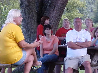 Brenda Holcomb (left) tells protest group they will have to take a leadership role, with former teacher and school board member By Dianne Weaver A group of Arnoldsburg area residents are getting ready to drive to Charleston Thursday morning to protest the hiring of Dr. Gene Rizzo as principal of Arnoldsburg Elementary School. If the principal does not resign or be removed, Tonda Delaney of Chloe is organizing a protest group which will seek help from Charleston officials. They plan to protest at the state capitol. Rizzo has reportedly already went to work. Friday is the first day of school. During a meeting held yesterday at the Upper West Fork Park, about twenty individuals agreed to move forward with a Charleston protest.