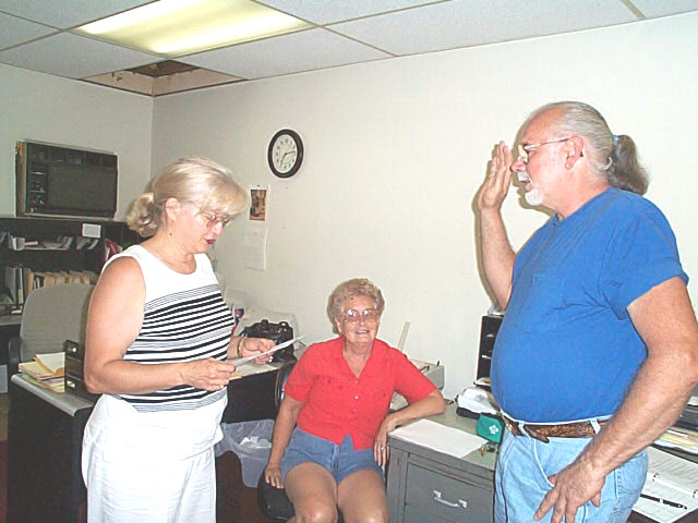 Recorder Phyllis Maze does swearing honors for Harris