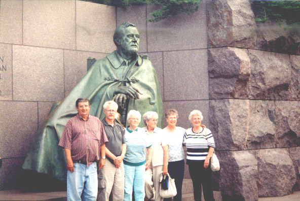 L to R: Euell Russell, Mike Ritchie, Madelyn Hathaway, Joan Auvil, Eleanor Caltabiano and Betty Ritchie, in front of FDR Memorial.