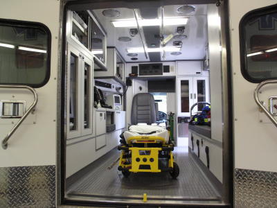 Fully equipped with advanced life support equipment The Truck In order for this to take place several pieces of equipment were needed to be put into service, with the first piece being a critical care transport truck. This truck is large enough to carry a three-person crew, the patient and the specialized equipment needed to monitor and treat the patient. Some of the equipment that will be put into service includes: a patient ventilator that will aid the patient when they are unable to breathe on their own. Advanced cardiac monitors that have the ability to "shock" a heart back into a beating heart and also have the ability to control the patient's heart rate. Advanced invasive monitoring will enable the crew to monitor cardiac output, respiratory effort and cerebral pressure. There will be space to allow the crews access to all emergency medications and critical I.V. drips. This truck also is equipped with the ability to transport the critical pediatric patient in an isolett. In conjunction with Critical Care Transports, this team and equipment will be utilized as a first response vehicle to respond to a mass causality incident such as a multi-vehicle accident and also respond with mutual aid to the outlying EMS agencies on the scene of a critically ill or injured patient. This team is also trained in hazardous material recognition and response and will have the capability to isolate and decontaminate patients.