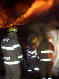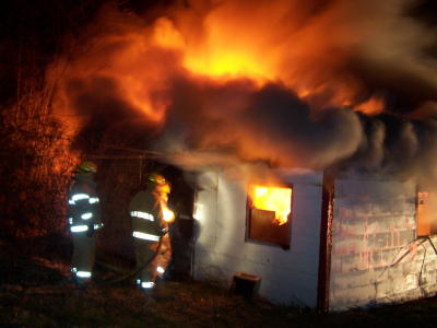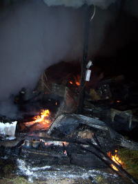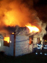 ![]() Fire roared through Wolf Run structures By Bob Weaver Fire roared through a small house and garage on Wolf Run last night, both structures are a total loss. A nearby house was spared. Part of the building was already on the ground when firemen arrived, using water from tankers to fight the blaze. Shortly after their arrival, there was at least one loud explosion. Firemen indicated there were oxygen bottles in the building.