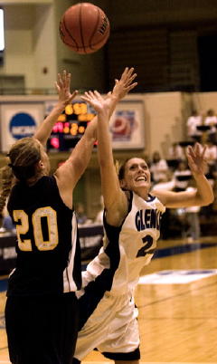 | By Drew Moody Special for the Hur Herald The University of California-San Diego defeated them 71-61 in the opening game of the NCAA Division II Women's Elite Eight, but...Rachel Redick, her three senior teammates, and the rest of the Glenville State College Lady Pioneer Basketball team certainly have nothing to be ashamed of. Rachel Redick won most, if not every honor she was considered for during her basketball career. And, she consistently did it with such style and intensity, she gained national recognition even though in the mountain foothills of very rural Glenville, WV. She led the team to unprecedented success and raised the bar of excellence significantly, relative to anyone soon surpassing her or the team's records this season. You might think of her like the "Michael Jordan of West Virginia Women's Basketball," and in many ways she was. One obvious difference - Rachel has never dunked a basketball.