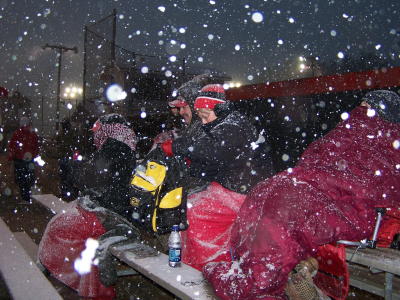 (Photos by Kelley Houchin) Today's photos from Patty Haught showing Calhoun High baseball players and fans suffering through snow and cold Thursday, brought a chill, but Friday night the players traveled to Sissionville to play a double header, and it "took the cake," said Kelley Houchin. "I've heard of a rain delay, but never a snow delay," said Houchin. The team came home, early.
