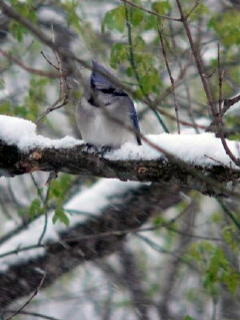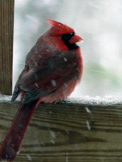 Blue Jay and Cardinal taking the weather in stride (Photos by Anita Vannoy)