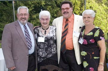 Dr. Richard Bokanyi, DVM, left, and his wife Juanita far right, Barbara Given Ayers, '57, of Cowen, was an elementary school teacher in Kanawha, Putnam and Webster counties before retiring. She and her husband, Arnold, graduated from high school in Webster County. They came to Glenville together, but after a year of classes Arnold joined the military. After his service duty was complete he worked in the mining industry. Bill Jones, '57, and his wife Connie, of Parkersburg, are both Glenville State College graduates. The couple spent their careers in social services. Friday was Bill's first trip back to Glenville since the early 1960s. A group of women at Friday evening's reception said they didn't fit in with any campus sororities at the time. So, they made one up, calling the group "The Physiqurita's." None of them could remember what the name meant.