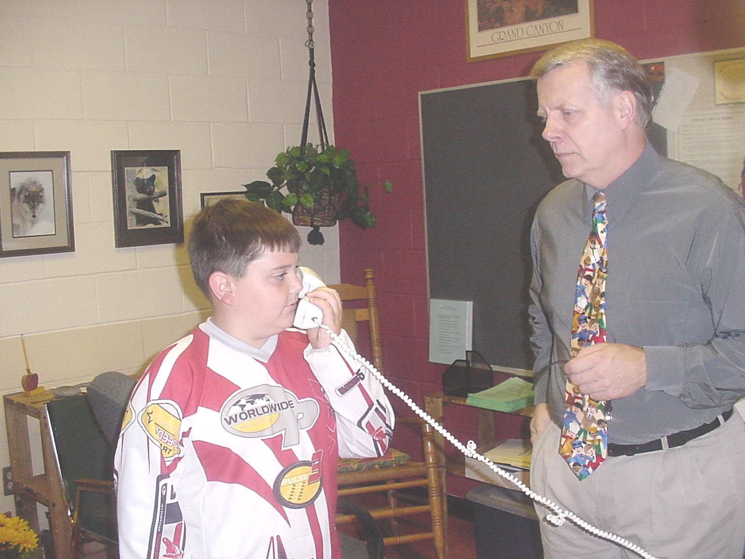 ![]() Drew Williams and Principal Larry Stinn Friday the students at Pleasant Hill School responded to President Bush's call for a day of prayer and remembrance for the victims of the terrorist attacks and their families. Mr. Stinn, principal, introduced a minute of silence for the entire school. Drew Williams, 4th grade student, led all of the students and staff in reciting the Pledge of Allegiance. |