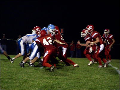 Although the Red Devils dominated the second half they were unable to put any breathing room between them and PCHS until midway in the fourth quarter. The 'breathing room' came when Houchin spotted DeWeese in the back of the end zone on a scrambling 14-yard completion. The botched extra point attempt made it 13-7. But Calhoun's defense stopped Catholic and a late drive put things away when Goodrich ran it in from 22 yards out with 25 remaining. Overall Calhoun controlled things with 19 first downs and 341 total yards to six first downs and 162 total yards for the Crusaders. Goodrich led the way for Calhoun with 28 carries for 165 yards while Houchin was 8-15 for 98 yards and a touchdown. DeWeese was the leading receiver with five receptions for 50 yards. One area that plagued the Red Devils was penalties as they were whistled nine times for 80 yards. Catholic, on the other hand, had three penalties for 15 yards. Calhoun will try to continue its winning ways next Friday night when it travels to face perennial power Williamstown.