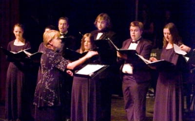 ![]() Carol Benton directing members of the GSC Chamber Singers.