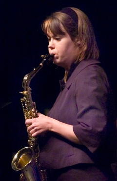 ![]() Brandi Horn, a member of the GSC Woodwind Ensemble, was featured soloist on alto sax. She's also Drum Major of the Pioneer Marching Band.