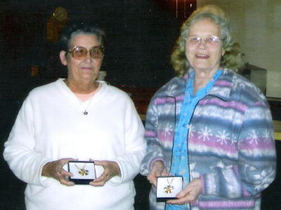 ![]() Francis Tanner (left) and Freda Whytsell (right) Francis Tanner and Freda Whytsell were recently surprised with a dinner in their honor at the VFW Hall in Grantsville. Francis is president and Freda is secretary of the Grantsville Post 5959 VFW Ladies Axillary. Bob Yoak, VFW Chaplain, presented Francis and Freda with Ladies Auxiliary emblem pendants. Freda was also presented a certificate for outstanding dedication and volunteerism in helping other veterans. Francis has been a member of the Auxiliary for the past nine years. She first served as secretary for three years and has been president for the past six years. Francis is in charge of organizing the annual Veterans Dinner held each year among all her other duties as president. Freda is a seventeen year member. She has served as secretary for two years. She has also held other posts in the Auxiliary. Freda and her husband Paul schedule the van for local veterans to ride to the VA Hospital in Clarksburg for appointments. She makes sure all cards and gifts are received at the hospital. Freda also makes lap quilts and wheelchair coat bags for those in the hospital. Each Friday you will see the two ladies volunteering, along with Linda Staton, Tina Hammick, Ernestine Ball, Shirley Ball, Judy Hays, and Marie Hays, preparing and delivering delicious meals as a fundraiser for the Auxiliary chapter.