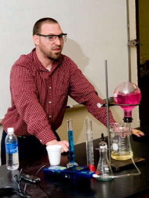 For others, they may be labeled as the "science geeks" who blow things up. In any case, they have fun doing it. Plus, these days many lucrative options greet graduates possessing any one of several degree programs available - whether in biology, chemistry, math, or nursing. "We want to increase interest in the sciences," said advisor Dr. Kevin Evans (left). John M. Brown, lead ACS presenter, encouraged his Richwood High School audience to find a college that matches their individual needs, and yes....consider a career in science.