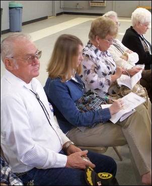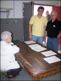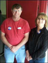 ![]() LEFT (L to R) Margie Evans, Democrat Executive Committee Secretary, Harold Carpenter of Arnoldsburg and Calhoun Commission candidate Chip Westfall; RIGHT Calhoun Commissioner Rick Sampson and magistrate Teresa Robinson, incumbents running for re-election
