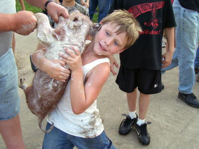 Bryer Metheney caught his greased pig last
