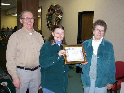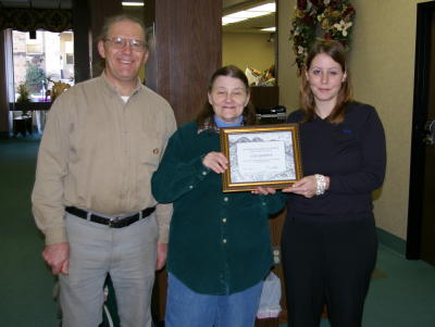 Tom Degen (L) Judy Wolfram (center) and Sandy Marshall (R) GRANTSVILLE, W.Va. - Sandy Marshall and Erin Springston have been named 2008 Recycling Champions by the Recycling Coalition of West Virginia and the Calhoun County Solid Waste Authority for their efforts in recycling paper. Marshall and Springston are employees at Calhoun Banks in Grantsville, and for the past three years have taken it upon themselves to ensure that all of the paper the bank shreds does not end up in the landfill but rather at the Cabot Recycling Station, operated by the Calhoun County SWA. "The RCWV is proud to acknowledge these Recycling Champions who go above and beyond to reduce, reuse and recycle. We all benefit from their efforts, which provide for a better tomorrow," said Paul Hayes, chairman of the Recycling Coalition. Tom Degen, executive director for the Calhoun County SWA, said the bank brings in more paper than anyone else in the county. "I receive 20 bags of shredded paper twice a month from them," Degen said. "They bring it in by the pickup load." The RCWV, in collaboration with local or regional solid waste authorities are honoring ten Recycling Champions who have reached beyond their normal responsibilities to contribute time and service to the recycling industry in the Mountain State. These individuals, groups and businesses provided significant recycling leadership across the state that improves the recycling community. Join us in acknowledging those who reach beyond their normal responsibilities to contribute time and service to our communities. Other Recycling Champions across West Virginia include: Berkeley County Recycling Champion - Edgar Mason Brooke County Recycling Champion - Follansbee Middle School Lincoln County Recycling Champion - Howland Sharpe Monongalia County Recycling Champion - PC Renewal Nicholas County Recycling Champion - Evan Kjell Jorgensen Putnam County Recycling Champion - Greg Sayre Taylor County Recycling Champion - Great Paper Cha$e Upshur County Recycling Champion - Jerry Arnold Wood County Recycling Champion - Steve Taylor The Recycling Coalition of West Virginia is a nonprofit environmental organization whose mission is to promote the effective and sustainable reduction, reuse and recycling of materials otherwise destined for disposal. RCWV pursues these goals through the promotion of purchasing products made with recycled content material; by coordinating and facilitating activities relative to recycling; by fostering communications among organizations, government agencies and individuals and through the sharing of ideas and resources. Visit www.wvrecycles.com for more information.