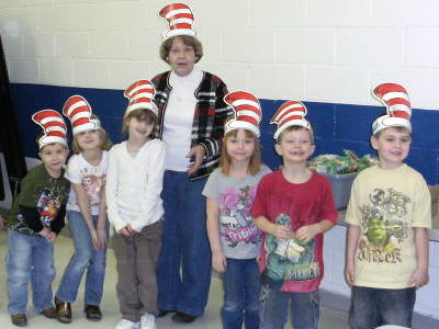 ![]() Kindergarten students enjoy wearing their special hats By Shirley Hupp Children may not know his real name, but they know what they like, and what they like is Dr. Seuss. The impact he had on books for children is an enduring one. Dr. Seuss' real name was Theodore Geisel. He was born in 1904 in Springfield, Massachusetts. The plots of his books are entertaining and often teach a lesson, from the importance of taking responsibility for the earth and one another to learning what is really important. With their quirky characters and clever rhymes, Dr. Seuss books are great to read aloud. Arnoldsburg Elementary school children celebrated Dr. Seuss' birthday March 2, with a special lunch, birthday snacks, and reading from his books. Eighteen students from Calhoun County High School's Learn and Serve Organization came to Arnoldsburg Elementary to read to the students. The students came with snacks, activities, and lots of enthusiasm. Other activities throughout the day included the reading of "Cat in the Hat" over the intercom by Mrs. Nemitz, "Green" Eggs and Ham at lunch, and an afternoon snack for each student provided by the PTO.