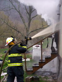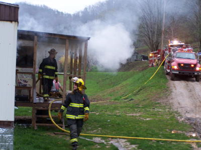 A fire this morning gutted a mobile home on Pink Rd., about one-half mile off US 33-119. Arnoldsburg and Upper West Fork firemen responded to the 7 a.m. call, to the vacant dwelling, owned by Marvin Wilson. A renter had left the mobile home about a month ago. After the fire appeared to be out with firemen returning to the station, fire erupted through the roof of the dwelling. They returned to the scene.