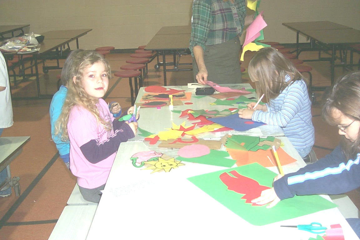 Students working on their puppets The students represented the months of the year and performed their play which was video-taped and then critiqued for improvements before the "BIG" production. Several parents returned to watch the final performance. The puppet theater was funded through the Lights On Project. |