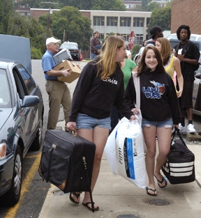 Freshman move-in day 2008 FRIDAY IS FRESHMEN MOVE-IN DAY Administrators, professors and staff gather to help freshman and their parents move into the dorms. Students are expected to report between 8 a.m. and 1 p.m. Friday, Aug. 14. In what has become an annual fall ritual, college personnel have become experts at speedily dispensing with checking everyone in, assigning rooms and getting their belongings to the right place. Despite the heat and a seemingly endless line of cars and carts being loaded and moved about it's accomplished with good humor and lots of smiles. Returning students have a more flexible check-in and are welcome Friday afternoon, Saturday or Sunday. FRIDAY AND SATURDAY CAMPUS ACTIVITIES Following the move-in madness a variety of activities are slated during the weekend including musical entertainment, a beach block party, and a picnic. The public is invited to attend the Community and Campus Fair picnic beginning at 11:30 a.m. on the Clark Hall lawn. A complete listing of all activities can be found on the GSC website by clicking on the "GSC 100" box located at the top left of the home page. That web address is www.glenville.edu CONCLUSION OF A BUSY SUMMER While summer is frequently seen as a time when "school's out," the GSC campus recently wrapped up one of its busiest summers. In addition to class offerings the college also hosted scores of West Virginia high school students and teachers participating in two three week NASA programs. A total of 60 students were immersed in field and lab work focusing on areas as diverse as robotics, rocketry, and collecting and cataloging field specimens. Their schedules were mixed with class work, special presentations and field trips to such places as Washington D.C.'s Smithsonian Institute. Making their first visit to GSC were more than 80 high school students and teachers involved in the Health Sciences & Technology Academy (HSTA). The college's criminal justice department provided the backdrop for them to investigate the historic 1919 Glenville murder of Sarah L. "Sis" Linn. HSTA provides an environment encouraging interest and success in the health sciences. Students who complete program requirements during their high school years can qualify for college scholarships and tuition waivers. LIGHTNING STRIKE DAMAGE UPDATE In mid-June the college's landmark clock tower was struck by lightning during a severe storm. Witnesses reported it appeared a "ball of fire" rolled down the face of the administration building. The intensity of the "strike" was felt across campus and damaged a variety of equipment. Maintenance personnel said although their were redundant safety measures in place the electrical overload traveled through campus phone lines spreading to a variety of equipment including the gymnasium air conditioning units and the main telephone switching system. By late July total damage had exceeded $100,000. Officials said once the control and phone systems are "stressed" with the influx of fall semester faculty and students any unknown damage should be quickly apparent.