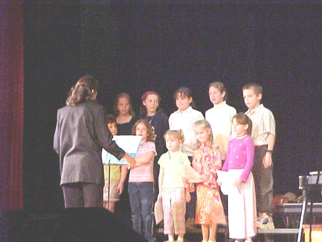 By Dan Cosgrove Congratulations to the Arnoldsburg "Lights On!" Children's Choir for two outstanding performances on 19 March. The choir had the opportunity to perform for both Arnoldsburg and Pleasant Hill students during a daytime performance at the Middle/High School and for families and the general public during an evening performance. Both performances received many accolades from people in attendance--for both the quality of the signing and for the challenging selection of Irish songs the children had to learn. The choir sang as part of a program called "Music in the Schools" that included both Middle School and High School students. The Arnoldsburg "Lights On!" Children's Choir is under the direction of Norma Myers. A special thank you to Mark Myers for his accompaniment on the keyboard.