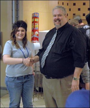 Submitted by Bob Edwards Glenville, WV - Glenville State College Dean of Student Affairs Jerry Burkhammer introduced Brittany Lott as the new GSC Pioneer Mascot for the 2011-2012 school year, April 29 during the GSC Week Picnic. Lott hails from Grant County West Virginia. She will be a sophomore next fall majoring in Music Education. She was selected as the Pioneer after completing an application process which includes an essay, references, and an interview with the selection committee. The new Pioneer is only the third female mascot in school history, following in the footsteps of former Pioneer Mascots Myla Mynes (1990-1991) and Marti Herson (1993-1994). Lott becomes the 74th Pioneer Mascot. "I absolutely love Glenville State College and am looking forward to representing the school, the students, and fans as their Pioneer Mascot. I am full of school spirit and not afraid to act crazy and try to generate some excitement. I hope I will be able to pass along my enthusiasm and raise school spirit," said Lott. During her first year at GSC, Lott has participated with the GSC Marching Band and Pep Band, the Music Educators National Conference (MENC) and is a member of the Chi Zeta Pi sorority. As the GSC Pioneer, Lott's duties will include attending GSC football and basketball games, tournaments, and other school events. The Pioneer is charged with working with GSC students, faculty, and staff to positively promote and support the college. The official uniform of the GSC Pioneer mascot is a set of buckskins, a coonskin hat, and a musket. The new Pioneer will begin her tenure at the GSC Fall Convocation in August. She will take the field for her first football game as the Pioneer Mascot on Thursday, September 1st when the Pioneers host Carson-Newman at 7:00 p.m. at Morris Stadium. "I think Brittany was the best selection for our new GSC Pioneer. Although she will only be a sophomore, she is very mature and professional and possesses a wonderful enthusiasm. She will be a great Pioneer," said Burkhammer. Lott is the daughter of Robert and Glenna Lott of Cabins, West Virginia and Penny Prater of Petersburg, Virginia.