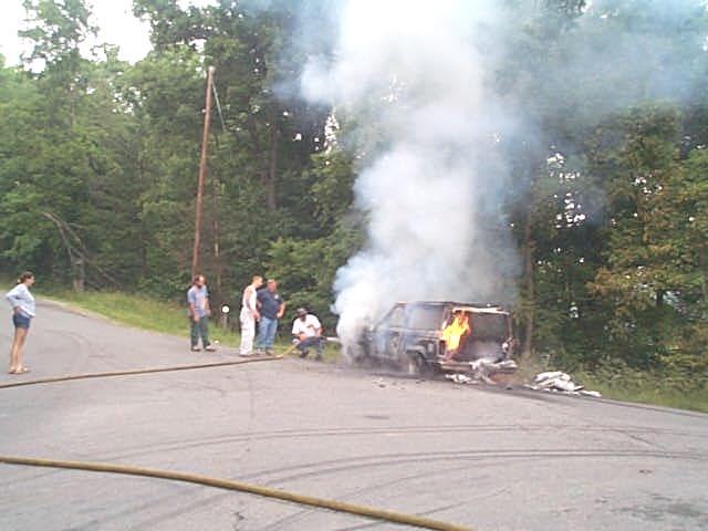 hill toward the Village of Hur when the fire erupted under the hood. The Grantsville VFD responded to the call.