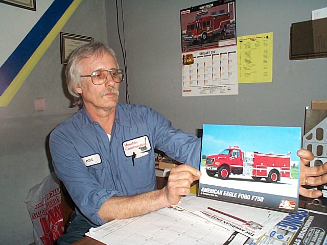 Fire Chief Bill Jones shows picture of new truck During Monday evenings regular meeting, firemen were busy pulling equipment checks and doing maintenance, while others were attending an in-service for "First Responders."