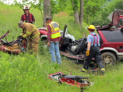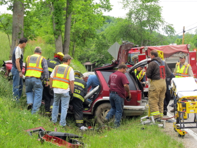 ![]() Sources at the scene identified the driver as Mary Morris. She was trapped in the vehicle and was extracted by firemen from the Arnoldsburg and Upper West Fork VFDs. The injured driver was taken to a nearby landing zone by Minnie Hamilton EMS, where she was life-flighted to a Charleston medical center, the extent of her injuries not available. The three children were taken to a Charleston Hospital by MHHS EMS for treatment for what appeared to be minor injuries. Sgt. O. S. Starsick of the Grantsville detachment is investigating.