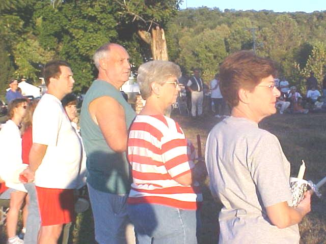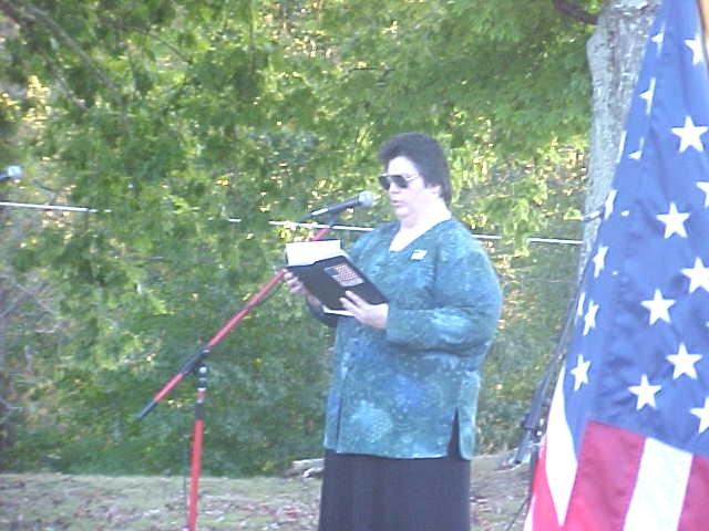 ![]() Pastor Mary Zimmer welcomes the community, gives message of hope It was a coming back to the mountain experience last night at a special candlelight memorial service for 9-11 survivors and the future of America. A large crowd gathered on Hamilton Field above Grantsville to recall their experiences, hear a message of hope and enjoy some special singing. VFW Post 5959 presented the colors. Pastor Mary Zimmer called upon clergy people from around Calhoun to give prayer, and those attending went forward to light their candles of remembrance from the "Christ Candle." During much of the day, national leaders and survivors met on "hallowed grounds" where citizens lost their lives in the attack on America. There was a recollection of one of the greatest speeches ever given, Lincoln's Gettysburg Address.