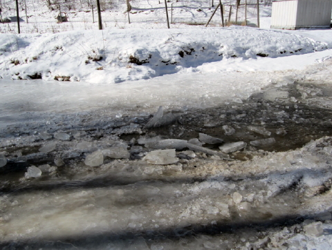 ![]() You NEVER forget the first time a chunk of ice pokes through the steel floor of your pickup and you learn on your first icy stream crossing that there is no plastic truck part harder than the softest ice. Here's hoping that with warmer weather coming this weekend that the thaw will be slow and ice jams will be small.