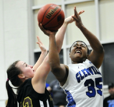 Kenyell Goodson goes up for two and fouled on the Story and Photos by Drew Moody Ending the season with a 29-4 overall record, Glenville State College's Lady Pioneers were just two games away from qualifying for the Elite Eight national championships. As with Friday's match-up with West Liberty the team faltered in the early going and failed to secure their typical rhythm of play. Overall Bloomsburg University (PA) played a better executed consistent game and jumped out to an early lead.