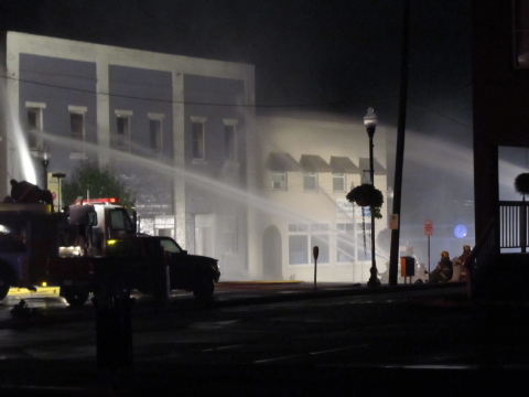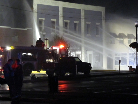![]() Photo Courtesy of Melinda Anderson, WOWK Channel 13 News Viewer Nine other fire departments responded to the blaze, pouring tens of thousands of gallons of water on the fire, preventing its spread. The buildings adjacent the fire were mostly apartments, with some commercial outlets on the ground floor. Firemen were still on scene at 11:00 p.m. Electricity was off to parts of downtown Spencer. In addition to the Spencer-Roane VFD, departments from Reedy, Clover, Walton Gandeeville, Newton, Ripley, Kenna, Arnoldsburg and Elizabeth responded. |