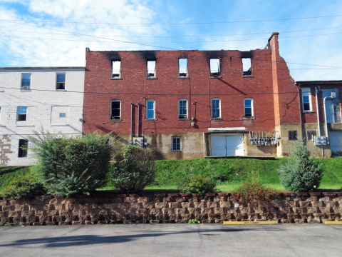 BACK VIEW - Shell of burned out downtown Spencer building owned