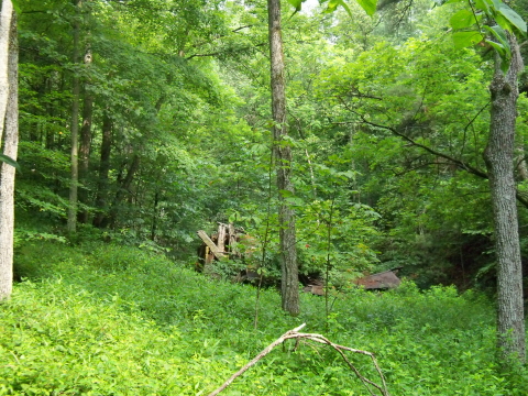 1800s Carpenter log house in deep By Bob Weaver The 1800s Carpenter log house, now caved, is in a tight, narrow hollow off the left fork of Barnes Run, known locally as Buckhorn, a short distance off the Husk Ridge. There was barely room to construct the cabin, the hollow so narrow it barely receives sunlight, with a trickle of a creek at the front door. There was a spring and it's farming was likely done on steep nearby hillsides.