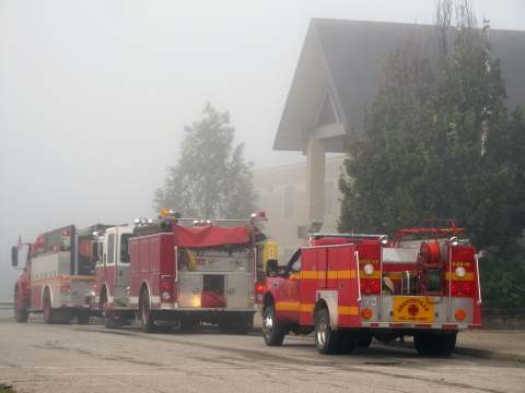 A problem reported at 8:02 a.m. Friday in a chemistry/physics lab at Calhoun Middle-High School caused the evacuation of students and staff from the building. Instructor Tammy Yoak said, "There was no fire and it happened in a science classroom, the physics lab. One of the ballasts on a fluorescent light blew and filled the room with a burning odor." The Grantsville VFD and Minnie Hamilton EMS responded to the scene. A heavy morning fog surrounded the area. The school was evacuated as a precaution until authorities made sure there was no fire and found the source of the odor, said Yoak. The situation was quickly resolved and students returned to class about a half-hour later.