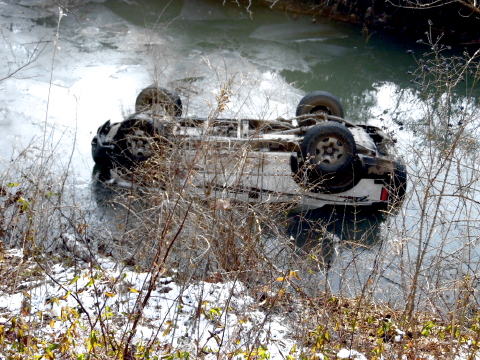 VEHICLES CRASH ON BLACK ICE RT. 16 SOUTH - SUV Lands In River, Driver Escapes |
