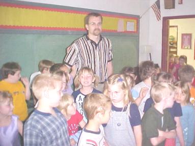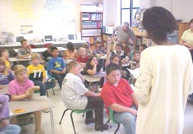 Charles Thomas tells his students about Africa Consolata believes her country is 50 to 100 years behind America. "We have very poor facilities and very few supplies," she said. "In my class I have only five books for 55 students." After discussing Calhoun was among the poorer counties in West Virginia, she was aghast, indicating our view of being underprivileged is much different than life in Kenya, exclaiming "Nearly all your houses have a stove and running water." Her family, which includes five children, sleep on mats. She has been teaching since 1984, for which she is paid about $100 a month. Her visit to Calhoun, staying with the Thomas family, was her first experience with frost, coming from a tropical climate. "It was so cold it made my whole body tired."
