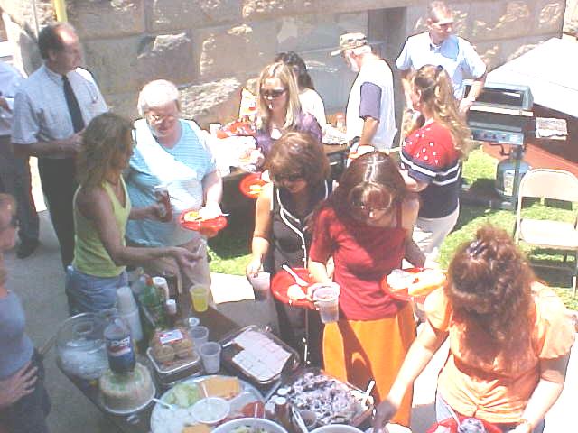 ![]() The dogs and burgers are always a hit After a long, cool and damp spring, summer broke "bad" yesterday with temperatures approaching 90 and it was time to have a barbecue on the courthouse lawn for the lunch hour. County employees and their families brought the goodies to have the get-together. Trevia Fulks and Tony Morgan celebrated birthdays.