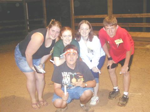 ![]() Calhoun 4-H members recognized (L to R) Sarah Butler (Hand H Recipient), Kara Haymaker (Heart H Recipient), Heather Weaver (Head H Recipient), Steven Cunningham (Health H Recipient), ( Front) Jacob McCumbers (Spirit of Camp Recipient) What do you have when you bring 85 enthusiastic children and 18 dedicated adult volunteer counselors together for a week in June? Give up? The answer is the 2003 version of Calhoun County's, WVU Extension Service, 4-H Camp. This year's theme "Power of Youth - Love It, Live It, Share It" provided youth, from third grade to 21 years old, an opportunity to develop life skills and form values intended to empower them to become productive and contributing members of the community. After months of planning to assure a meaningful experience for everyone, youth from Calhoun County set up residence at the Gilmer County Recreation Center from June 15 - 19. Although clouds and rain attempted to dampen their spirits, campers wholeheartedly participated in group activities, assemblies, and peer led presentations scheduled during the week. With rise and shine beginning at 6:50 AM, the campers' days were full and exciting. Following flag raising each day a nutritious breakfast was served to everyone. Since developing personal life skills, responsibility, and teamwork are several of the goals associated with 4-H camp, each camper contributed to making sure their cabin was cleaned and ready for daily inspection. The remainder of the morning was spent attending class and craft activities chosen by the campers prior to the start of camp. Classes and crafts were led by Teen Leaders and an outstanding group of adult volunteers. The afternoons began with lunch followed by Tribal Meetings. During Tribal Meetings, campers worked on the evening's Council Circle songs, yells, and skits. A popular afternoon free time activity was swimming! Without the threat of thunder or lighting, the lifeguard permitted campers to swim in the rain. If you never thought swimming in the rain could be fun, just ask any of the campers who tried it! Additional afternoon free time activities included healthy games and music. Dinner was served promptly at 5:30 PM following an angelic rendition of the song "Simple Gifts" sung by the entire camp. A second round of Tribal Meetings were held leading up to evening Meditation and Council Circle, the climax of each day. The day closed with snacks and lights out at 11 p.m. During Thursday's final Council Circle several campers were singled out and honored for their individual leadership qualities. The "Head-H" award representing a camper who exhibits clear thinking and possesses planning and problem solving skills went to Heather Weaver. The "Heart-H" award indicating loyalty, a sharing nature and concern for others went to Kara Haymaker. The "Hands-H" award was given to Sarah Butler who showed an ability to be self-motivated with a willingness to work and contribute to bettering the community. Steven Cunningham, this year's winner of the "Health-H" demonstrated a strong character, a healthy lifestyle and a high level of responsibility. In addition, Jacob McCumbers was selected as "Spirit of Camp," due to his outstanding leadership qualities as they relate to all four H's. Finally, Ryan Bremar received an "I Dare You" award. This award is given to an older camper who is exemplary in their 4-H development. Challenging the recipient to a four-fold development process to "think tall, smile tall, live tall and stand tall," this award is intended to "dare" the recipient to become more than they already are.