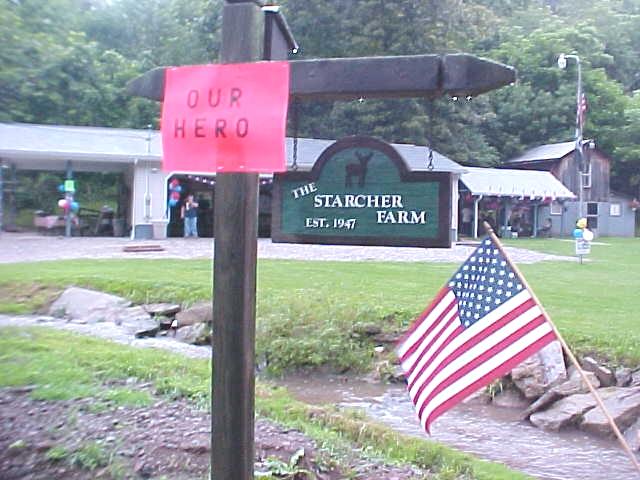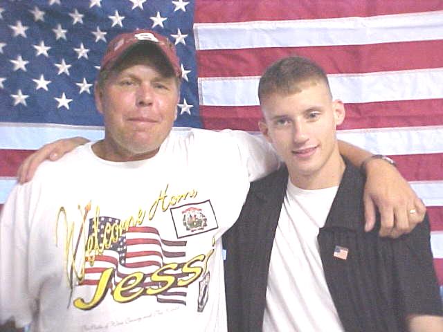Family and friends have a celebration By Bob Weaver In the hills of West Virginia, going off to war has been a giant leap for country boys. "I could only imagine what it would be like," said 20-year-old Pfc. Joe Starcher, who just returned to Calhoun for a three week leave after being in Iraq. Starcher is getting ready to go to Ft. Benning, Georgia to rejoin his 120-man Charlie 115 Infantry unit. His company just returned to America after the trek to Baghdad and occupying the capitol city. "We lost one man and several more where shot," said Starcher. "They are like my family," he said. "I began to understand what it meant to be a soldier." During the leave, he has spent much of his time on Jesses' Run, one of Calhoun's narrow, quiet hollows that was settled by some of our earliest families. Phillip Starcher, Calhoun's first permanent settler, put down his roots a short distance from the mouth of the creek along the West Fork of the Little Kanawha.